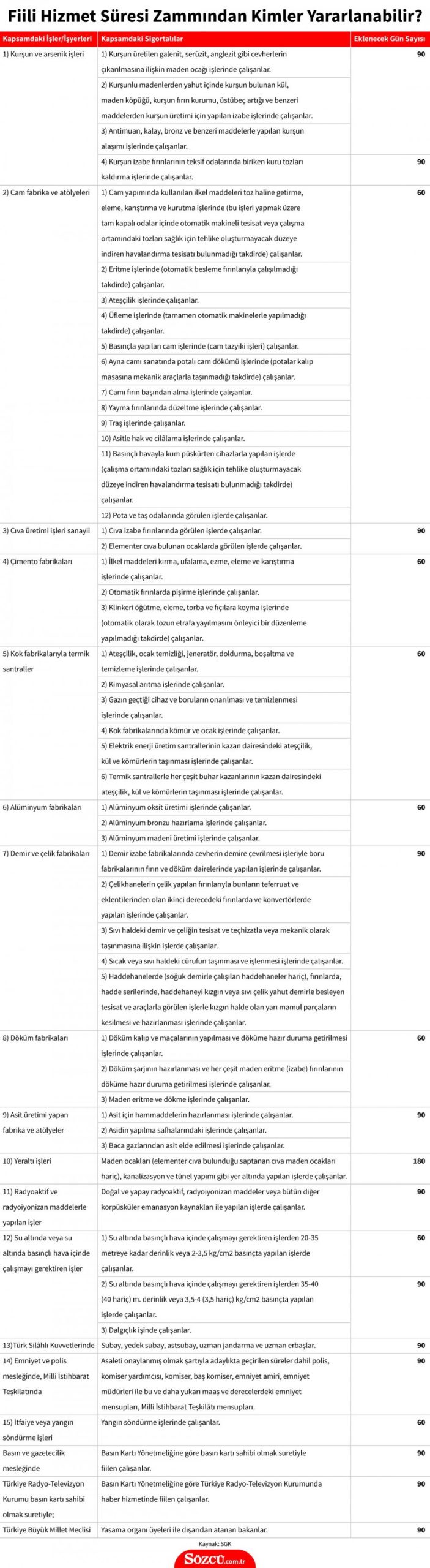 SGK’nın güncel listesine göre erken emeklilik hakkı tanınan mesleklerden bazıları şöyle: